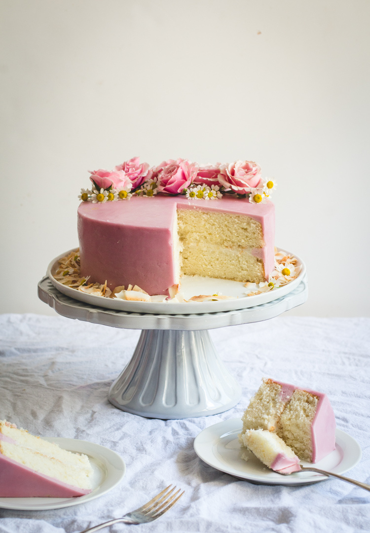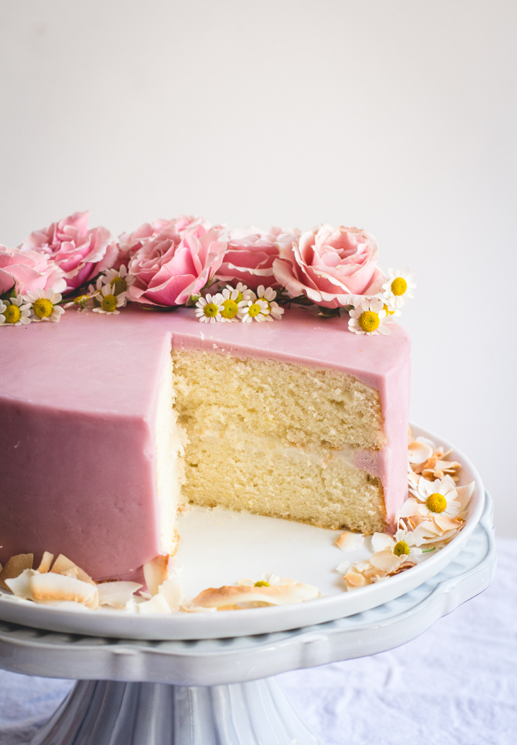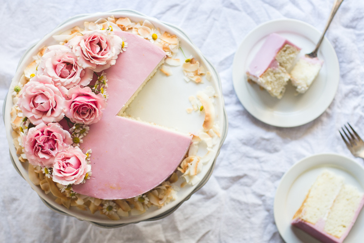 Lemon Cake with Haupia Filling & Hibiscus Buttercream
