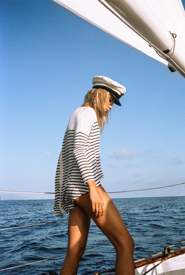 SEVEN – La Perla sailor stripes triangle bikini / EIGHT – Karen Walker tortoise sunglasses / NINE – A.P.C. striped silk sweater / TEN – 3.1 Phil.ip Lim striped canvas shorts / ELEVEN – Classic Soludos espadrille sandals