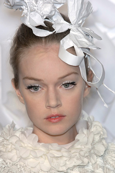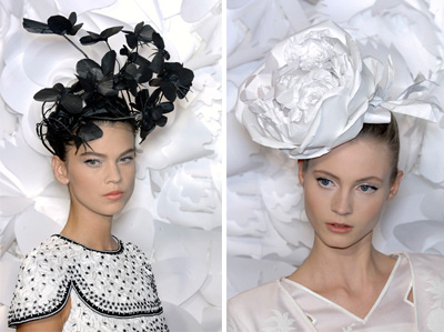 Have been completely caught up in the brilliantly creative and exquisite bleached flower cut-outs and sculpted paper blossoms strewn about the walls, tables, and floors of the all-white space of the Chanel Spring 2008 Couture show.