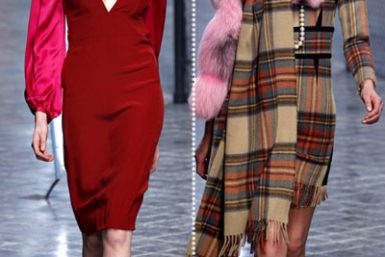 ...the sonia rykiel fall collection‘s perfect mix of tweed and satin, wraps and stoles, checks and tartan, along with elegantly lovely side chignons and red lipstick...