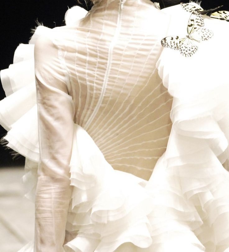 From there on, he became a theatre costumier, pattern cutter and subsequently was offered a place at the prestigious Central Saint Martins (CSM) MA Art and Design program where he began his ferocious, yet sublime affair with fashion. After having dressed clients such as Mikhail Gorbachev, David Bowie and Prince Charles, McQueen, who at this time still went by his first name Lee, was appointed the head designer at Givenchy by LVMH, succeeding John Galliano. Here, he produced his most famous runway shows [with Dress No #13 from SS 1999 displayed below], but later departed in 2001 after claims of being creatively constrained.