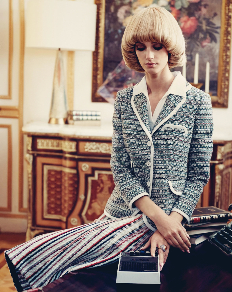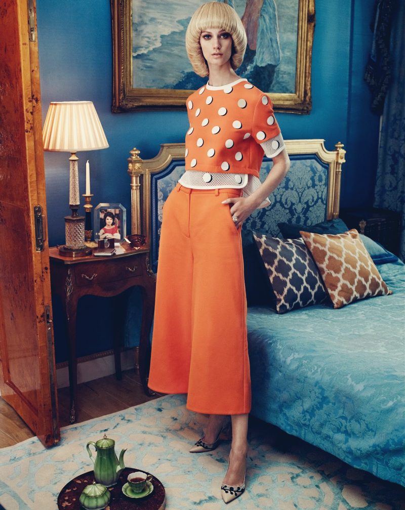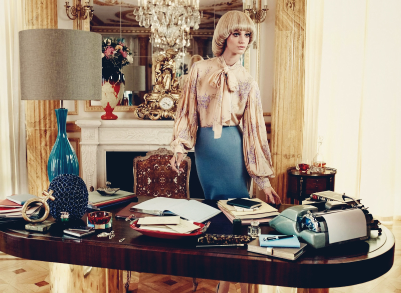 AMONGST GILDED WALLS AND MARBLE DOOR FRAMES lives a blonde-haired, slender and impossibly graceful vision. She wakes up every day with a new perception of the side of herself she is going to portray through her ensembles, whether that of a working woman in a silk blouse and matching pencil skirt; a sophisticate, in a violet coat accessorised with a pearl necklace and leather gloves; a chic hostess in printed midi dresses and understated golden jewellery; or simply herself in the purest form, wearing a white silk crepe de chine shirtdress with pearls . . .
