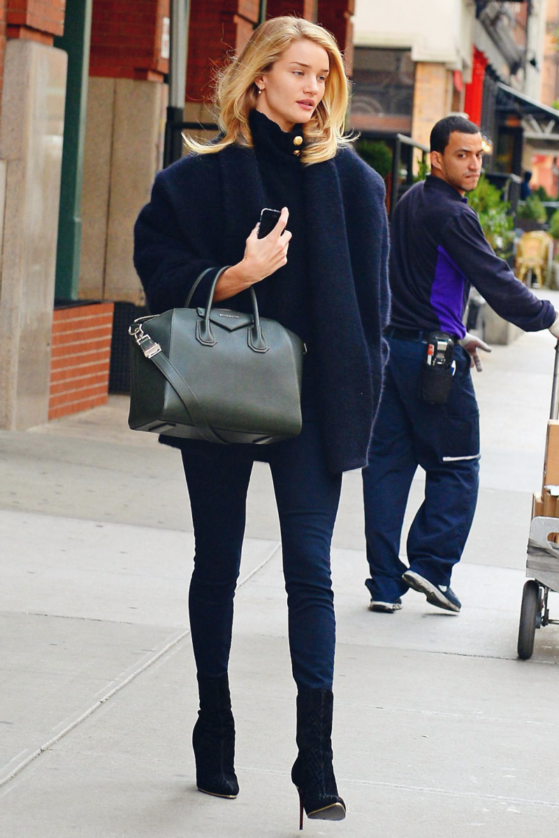 Rosie has become a style icon for all kinds of women—university students who neither want to, nor have the time to think too much about an outfit every morning, and who simply mix and match versatile separates with accessories; gym-goers who know that all-black Nike gear must be matched with a leather tote and sunglasses; working women, whom Rosie taught that a tousled blowout and a double-breasted piqué blazer can make all the difference; and lastly, the ones who need a day-to-night ensemble to seamlessly fit a day of meetings and errands with dinners and parties, for whom leather pants, stilettos and a blazer are the to-go pieces. —Victoria