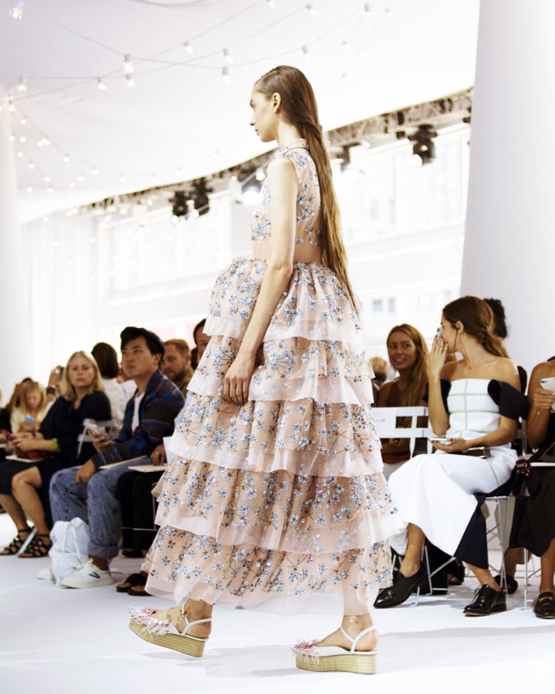 01IT IS EASY TO IMAGINE A FAIRYTALE written simply from Josep Font’s collections at Delpozo, that’s how much creativity and imagination they entail. The collection could easily be confused for couture, for the drapery and intricate embellishments and appliqués are just short of a dream. This season, clothes embody the women from Federico García Lorca’s Gypsy Ballads and Gustav Klimt’s muse, Emilie Flöge, with an underlying bohemian spirit — craftsmanship and folklore inextricably intertwined. There were hand crocheted raffia vests, larger-than-life volumes and silhouettes, and sparkle, so much sparkle. Victoria