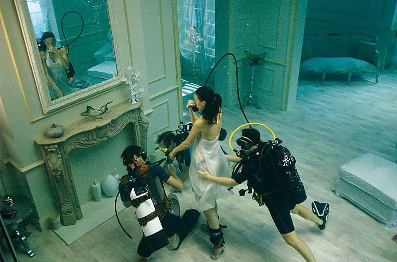 “Phoebe Rudomino is a commercial diver and underwater photographer based at the Underwater Stage at Pinewood Studios, the only facility of its kind in the world. She specialises in behind-the-scenes underwater stills and video for feature films, TV and commercials. This photograph was taken during a shoot for a commercial and was part of ’Water on the Lens’, an exhibition of underwater set photographs taken at Pinewood which took place at County Hall on London’s Southbank in 2009.” —Saatchi Gallery