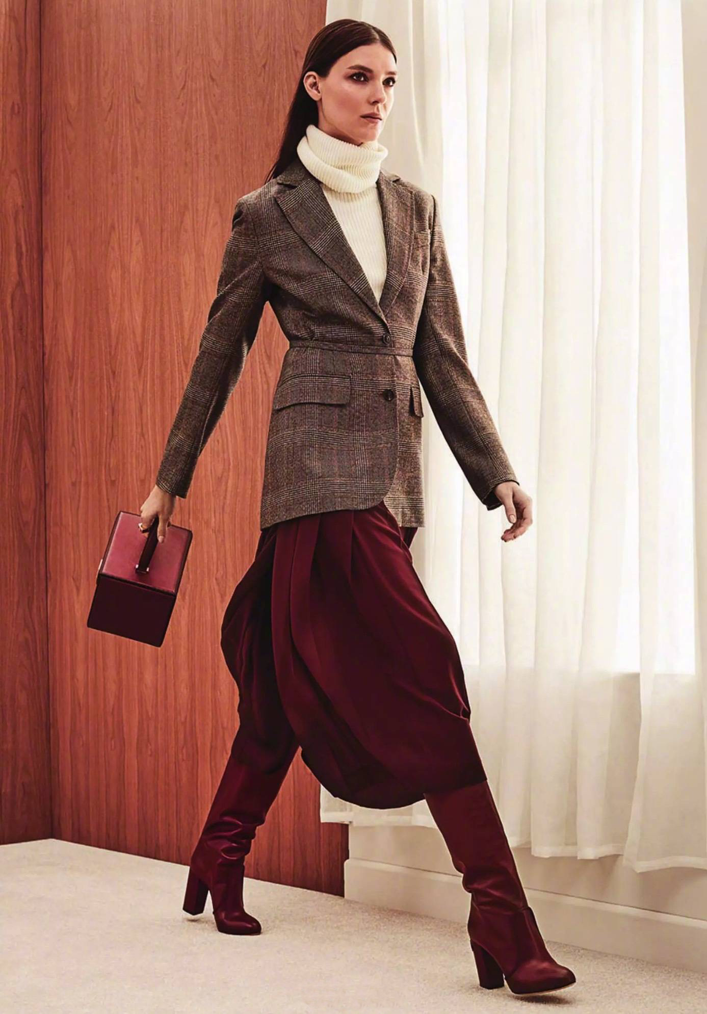 KNEE BOOTS HAVE BEEN RELEGATED TO THE BACKEND OF TRENDS, for it is the ankle boot in all its iterations — from the suede Isabel Marant version, to sleek patent leather white sock boots — that has featured in every season’s catwalks as the must-have piece for the winter season. And yet, the knee boot — hitherto a classic or an accessory for officewear and mid-aged mothers, you be the judge — returns for this season, paired with midi skirts and dresses. As a typical cyclical trend, it has matured beyond the aughts, when it used to be paired exclusively with skinny denim jeans and a tank top. For autumn, choose a sturdy leather and a boxy shape that hits just below the kneecaps, and pair with any dress or skirt that covers the top. The result? A streamlined silhouette that manages to combine style and comfort. — Victoria