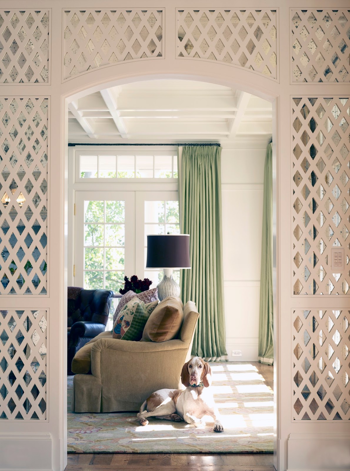 Fretwork, latticework and lattice are used interchangeably to describe the framework that is treillage, which consists of ornamental design constructed of strips of wood or metal. The French, along with the Dutch, would go on achieve a high level of refinement in the art of trelliage, creating arbors, galleries, summerhouses and more, with a keen eye for proportion and decoration. In the United States, it was decorator Elsie de Wolfe, who popularized the use of trelliage with her famous “Trellis Room” at the Colony Club in 1905, New York City’s private club for high society women (itself a novel idea, given that women did not yet have the right to vote). The architect Stanford White commissioned de Wolfe to design the space, which would include a pale palette and tiled floors, and glazed chintz normally only found in country houses at the time. But the most revolutionary design, however, would be the tea room, which resembled a garden pavilion that featured a fountain in the centre, wicker chairs and trelliage on the walls and ceiling, interwoven with ivy and lights. The originality of the space would create a stir, solidifying de Wolfe’s reputation as the first decorator in America, with a cliental that would eventually include the Morgans, Vanderbilts, and the Duke & Duchess of Windsor.