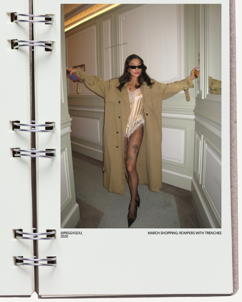 There’s something about March that feels like holding your breath. Winter hasn’t fully released its grip – the mornings are still foggy and crisp, the light still slants low – and yet. And yet. Something is shifting. You can feel it the way you feel the presence of someone you love in a room. This is the month of the almost. Almost warm enough to leave the trench unbuttoned. Almost ready to swap the heavy creams for something lighter, something that smells faintly of possibility. You find yourself reaching for things that live in that in-between space – a silk lace romper worn under an oversized khaki coat, bare legs in sheer tights, a Saint Laurent bag the colour of mulled wine against pale denim. Contradiction as a style philosophy. The skin feels it too. That end-of-winter dullness, the kind that settles in quietly over months of cold and indoor heating, suddenly feels worth addressing. Worth a moment. Worth a little illuminating drop mixed in, a gel that promises something fresher is coming. March is, above all, permission. Permission to start wanting things again – the light, the warmth, the new. To look at a lace romper and a trench coat on a hotel room floor and think: yes, exactly that. To believe, despite all evidence, that spring is not a figment. It arrives anyway. It always does.