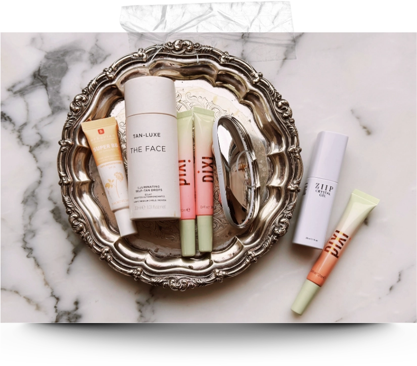 Erborian Super BB Cream / Tan-Luxe The Face Anti-Age Rejuvenating Self-Tan Drops / Liptone- PinkPatina / Liptone- Prettiness ZIIP HALO: Nanocurrent™ and Microcurrent Facial Toning Device (use code TIGZIIP) / Crystal Gel (use code TIGZIIP) / Liptone- Naturalness