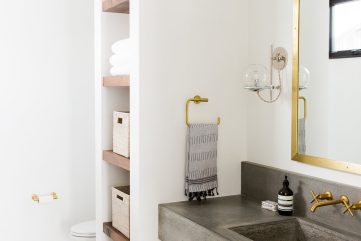 THIS PAST WEEKEND, we picked up a wicker shelf for the master bath and it had me thinking of powder...