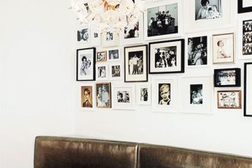. . . there are currently framed photographs and artwork leaning against the walls all over the house, waiting to be artfully arranged into gallery walls — above the desk, in the hall, perhaps even in the powder room — and one could only hope the are as perfect as this, of stark contrasts and paired with a stunning chandelier, in the breakfast nook . . .