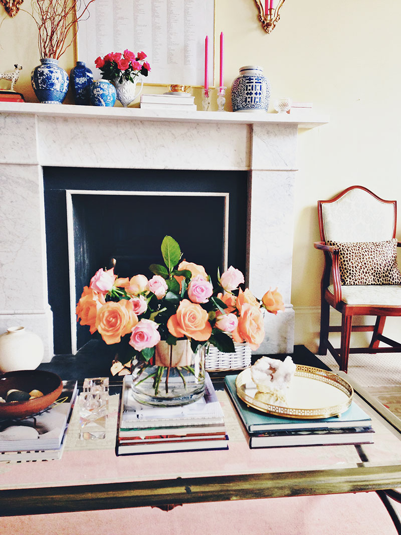 . . . and was completely swept away by the romance of dusky hue and elegant floral flourishes, and knew at once that it would be perfect intermingled with the gilded wall scones and marble fireplace of the living room.