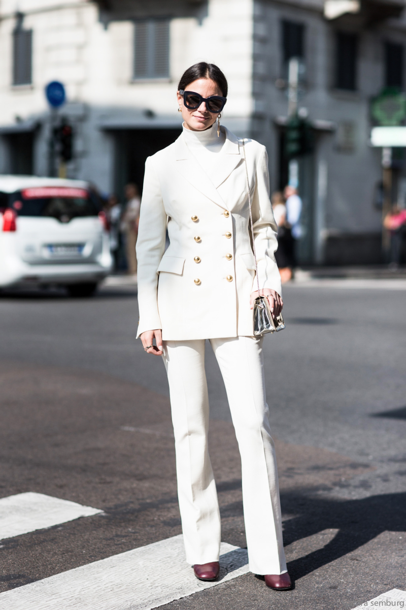 Italian street style stars seem to have stolen the show this season. Georgia Tordini maintains a monochromatic colour palette and simplistic style, yet imbues it with Italian touches, like that of a turtleneck combined with a thick wool blazer, or a retro double-breasted pantsuit in the most crisp hue of beige. Meanwhile, it-girl Gilda Ambrosio experiments with her style to such an extent that she might be unrecognisable from one day to the next, yet there is something wholly Italian about her attitude; she’s nonchalant, but never takes herself too seriously. And so, while we’ll always have Paris, why not pack a small suitcase of cocoon coats and double-breasted blazers in pearly beige hues, and a chic silk scarf by Hermès, and board a flight to Rome, à la Audrey Hepburn?