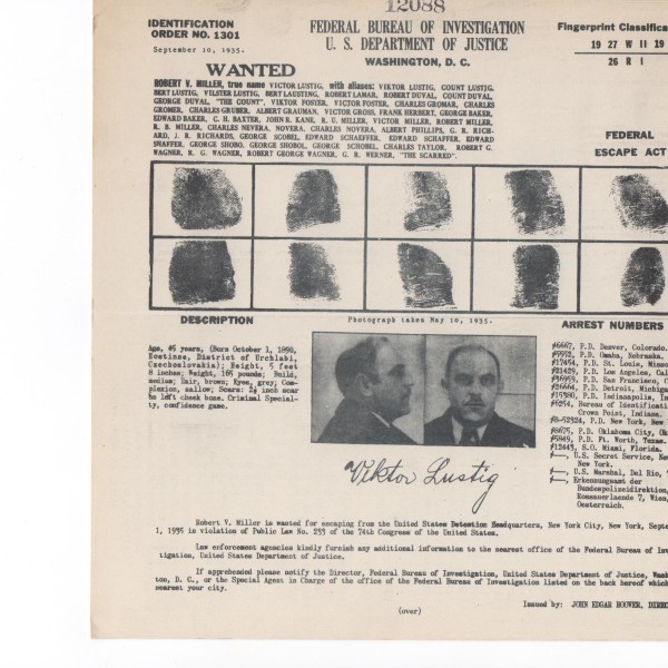 “Count” Victor Lustig, 46 years old at the time, was America’s most dangerous con man. In a lengthy criminal career, his sleight-of-hand tricks and get-rich-quick schemes had rocked Jazz-Era America and the rest of the world. In Paris, he had sold the Eiffel Tower in an audacious confidence game—not once, but twice. Finally, in 1935, Lustig was captured after masterminding a counterfeit banknote operation so vast that it threatened to shake confidence in the American economy. A judge in New York sentenced him to 20 years on Alcatraz.