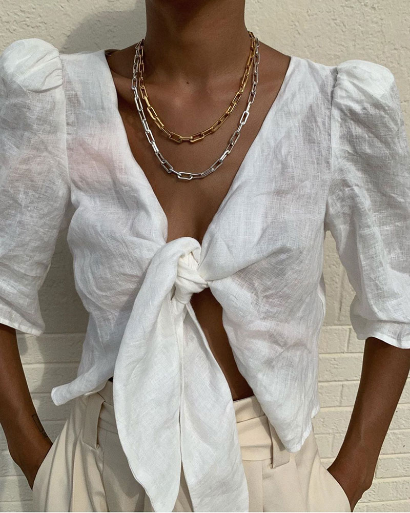 DANIELA IS GOING TO Provence on holiday in August, a time when it is typically hot in the south of France. She’s excited for the trip, but does not do well in the heat and does not wear dresses, and asked for advice on what to wear? The first piece of advice would be to keep to natural, breathable fabrics such as cottons and linens. Loose-fitting linen pants with white cotton or linen blouses (this scallop collar linen shirt is perfect) and singlets look chic while still keeping things cool. Here is some style inspiration that includes pleated trousers and ruffly blouses, city shorts and more…